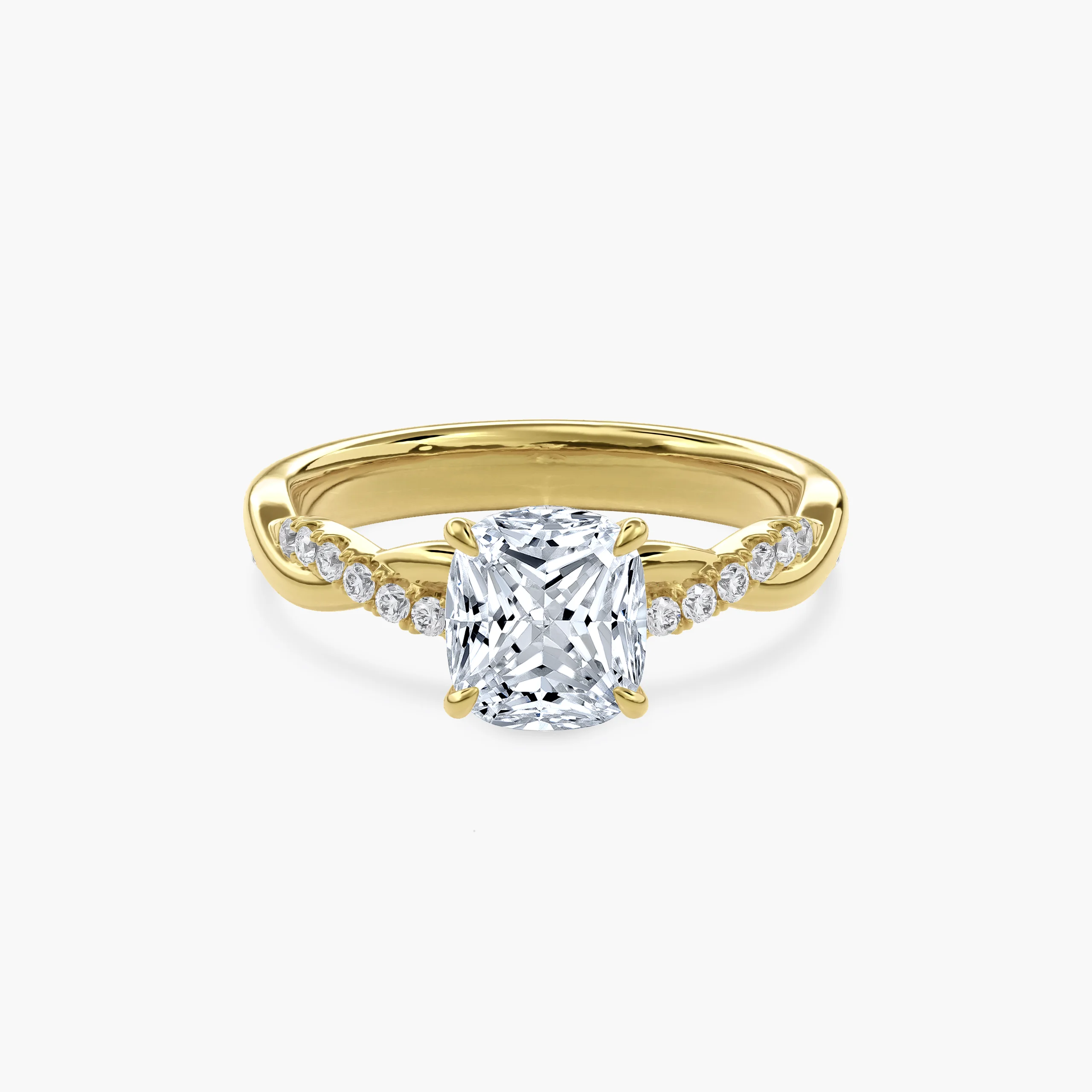 Rhea Cushion LGD Solitaire with Stone Twist Ring in 14k Gold