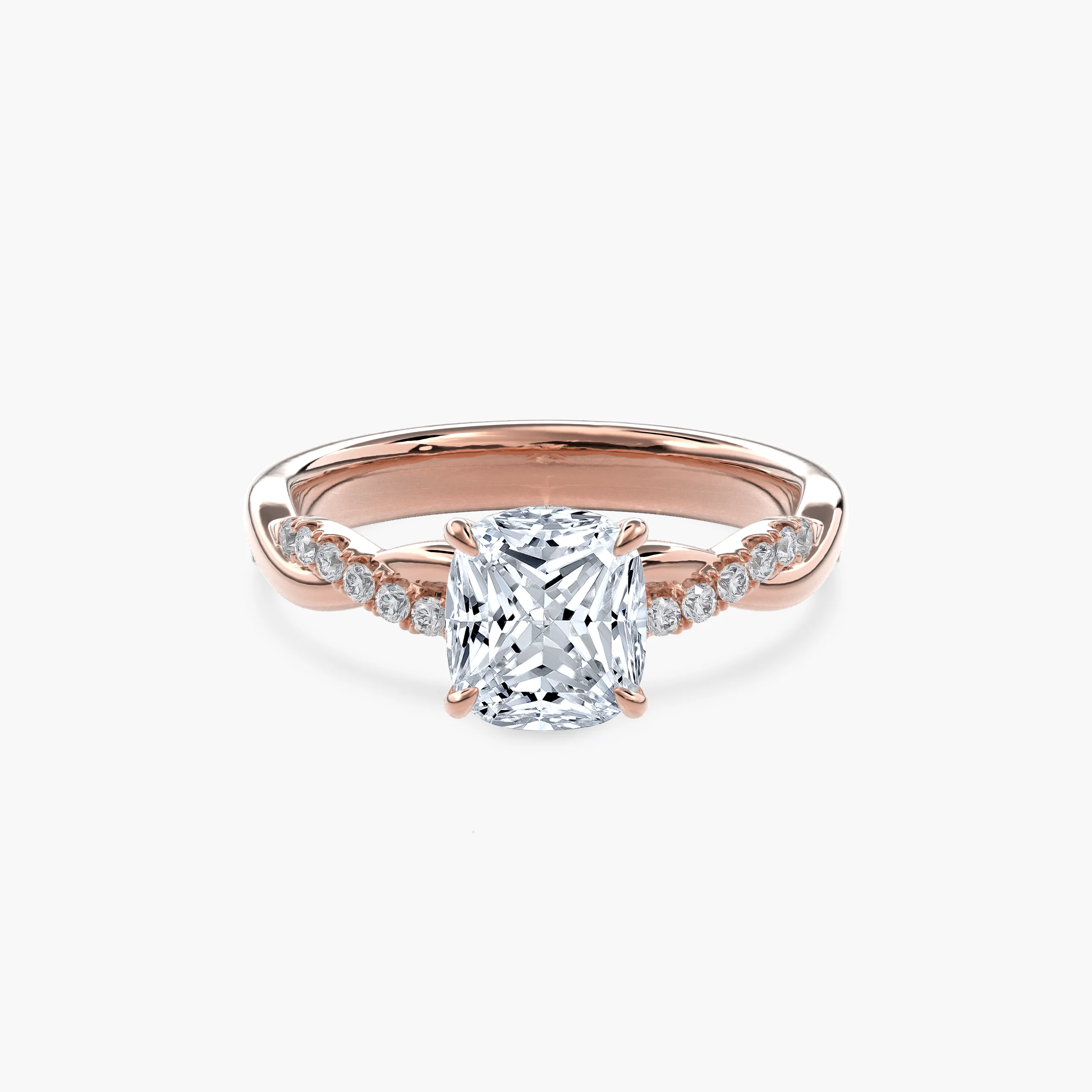 Rhea Cushion LGD Solitaire with Stone Twist Ring in 14k Rose Gold