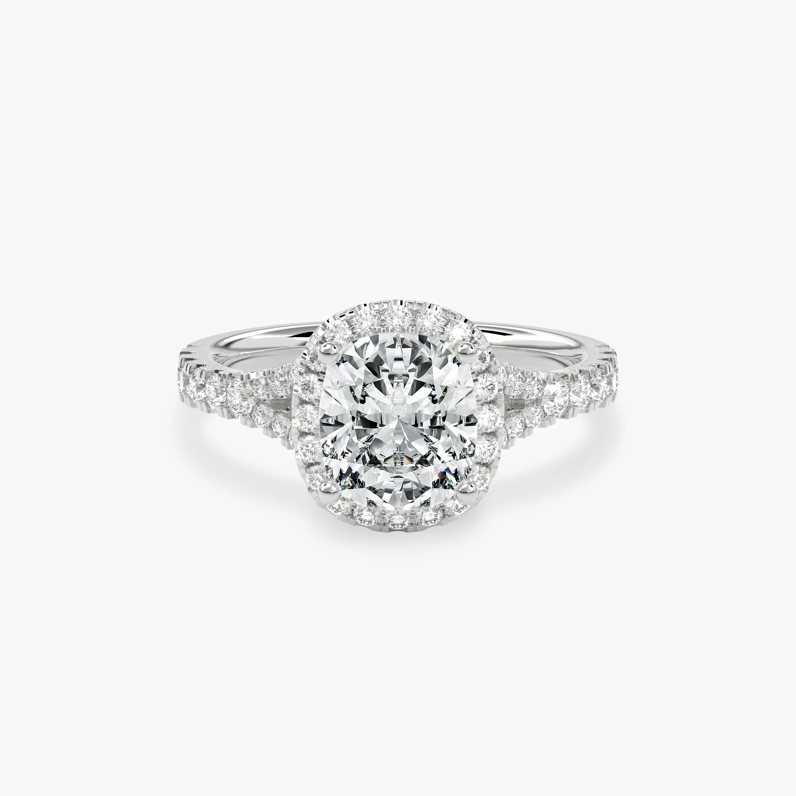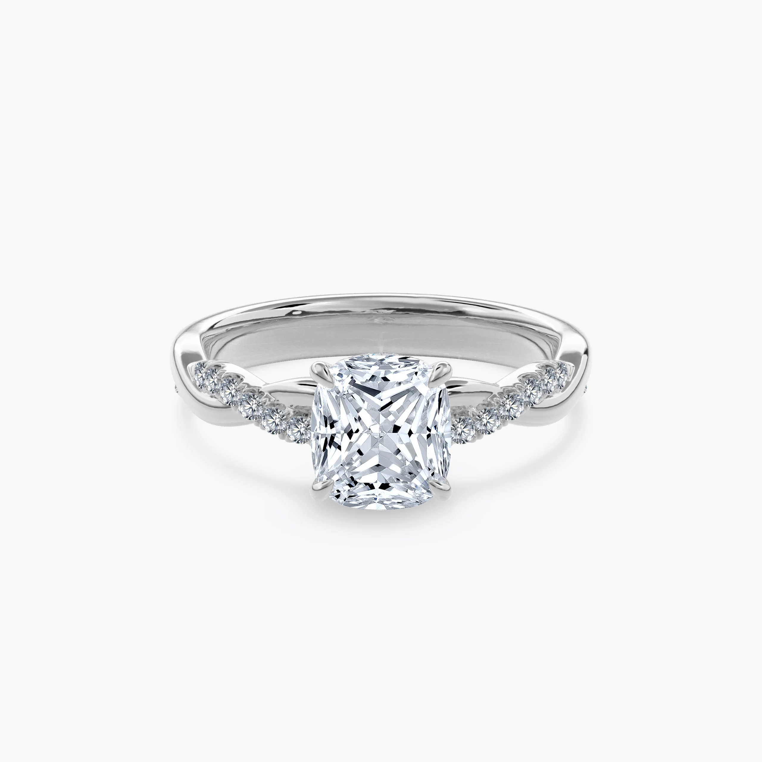 Rhea Cushion LGD Solitaire with Stone Twist Ring in 14k White Gold