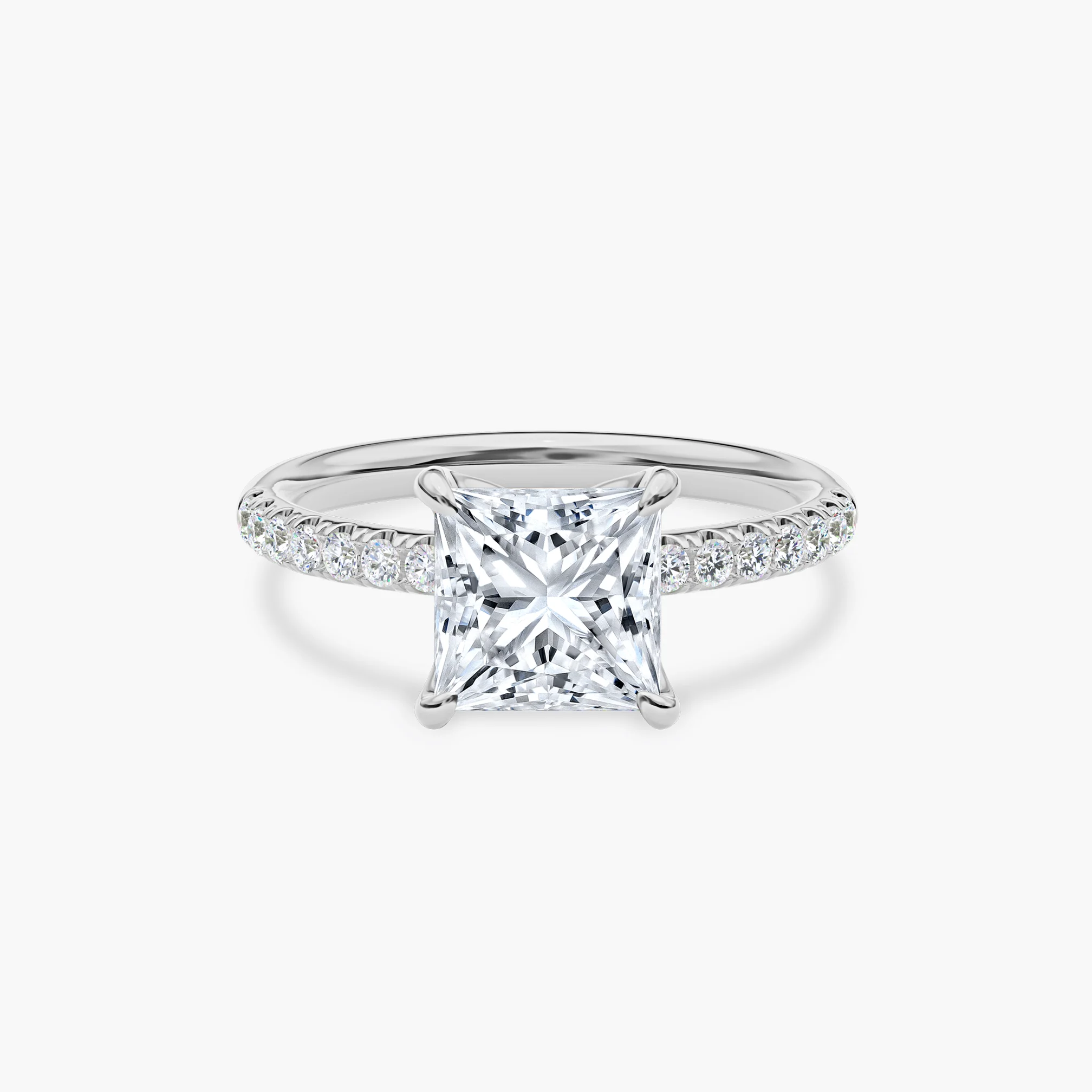 Rhea Cushion LGD Solitaire with Stone Twist Ring in 14k White Gold